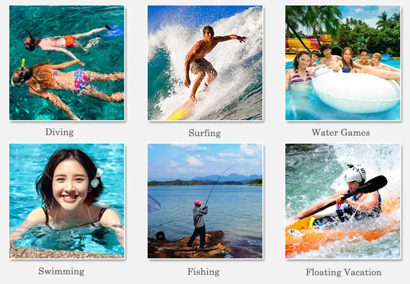 Applicable: Fishing beach swimming diving rafting upstream riverside exclusive and other related water activities