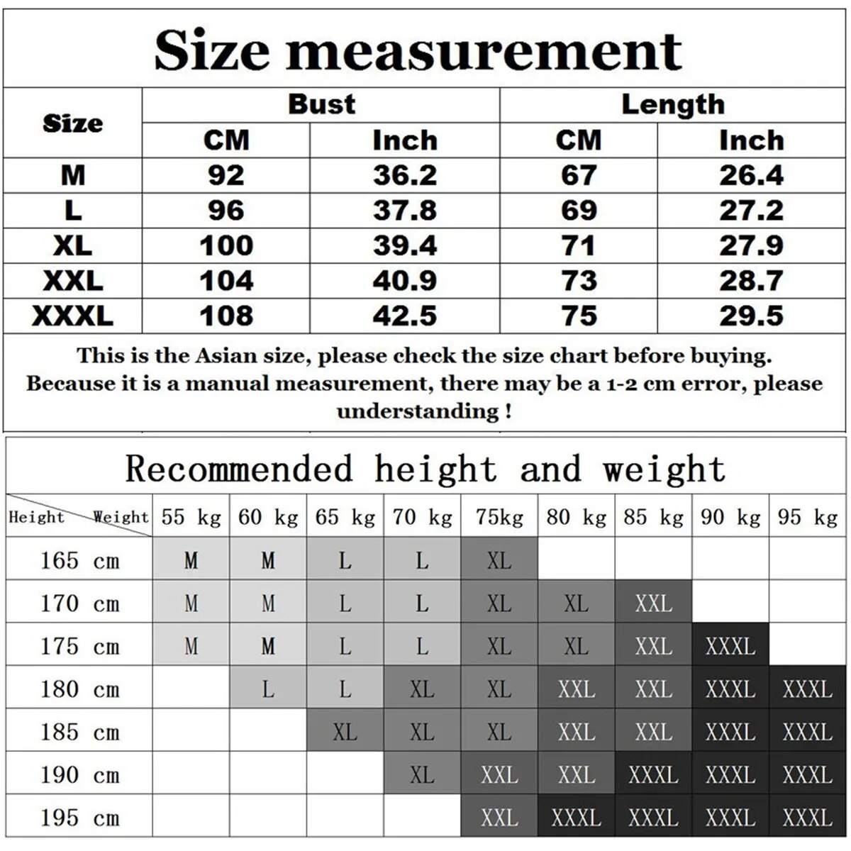 | Size | M, L, XL, XXL, XXXL |
